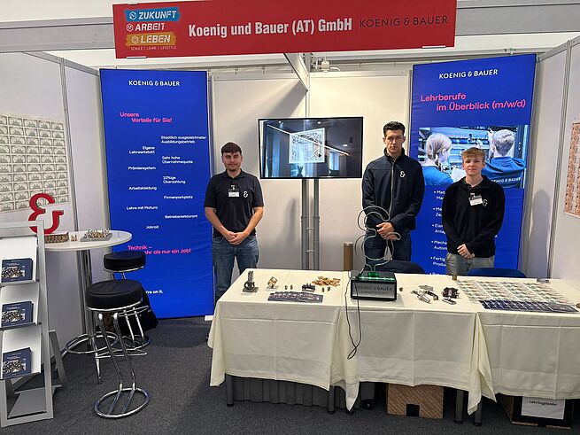 Ein ganz besonderes Highlight war unser Team vor Ort. Wer könnte besser über eine Lehrausbildung bei Koenig & Bauer AT berichten als diejenigen, die sie jeden Tag mitgestalten und erleben?