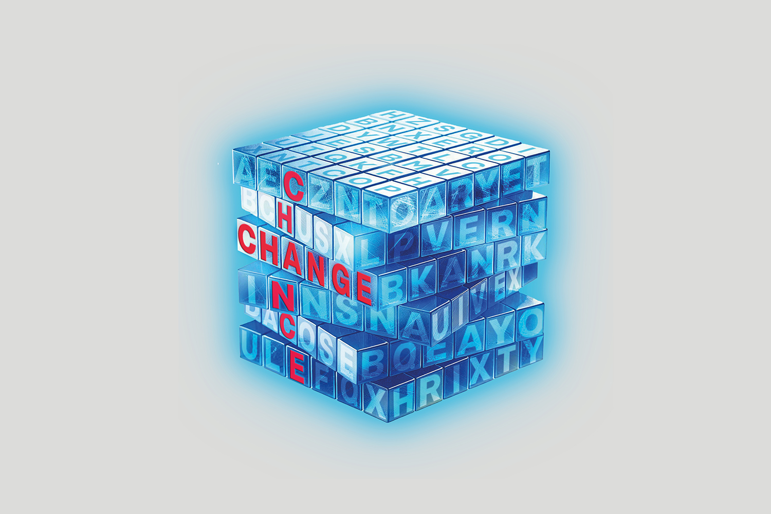 A futuristic AI-generated Rubik’s cube represents Koenig & Bauer’s transformation into an agile technology company. It shows the word “change” turning into “chance”, symbolising the fact that every change brings countless new opportunities.