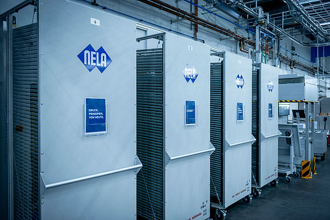 The PlateTronic plate logistics system features a fully modular in design, and can be adapted to the specific requirements of the respective print company using it. The system version installed at Krüger Druck+Verlag enables the printing of up to 20 jobs per hour with run lengths of around 300 sheets each. A job changeover occurs after approximately one minute of production. The press can continue alternating between printing and makeready for as long as necessary.