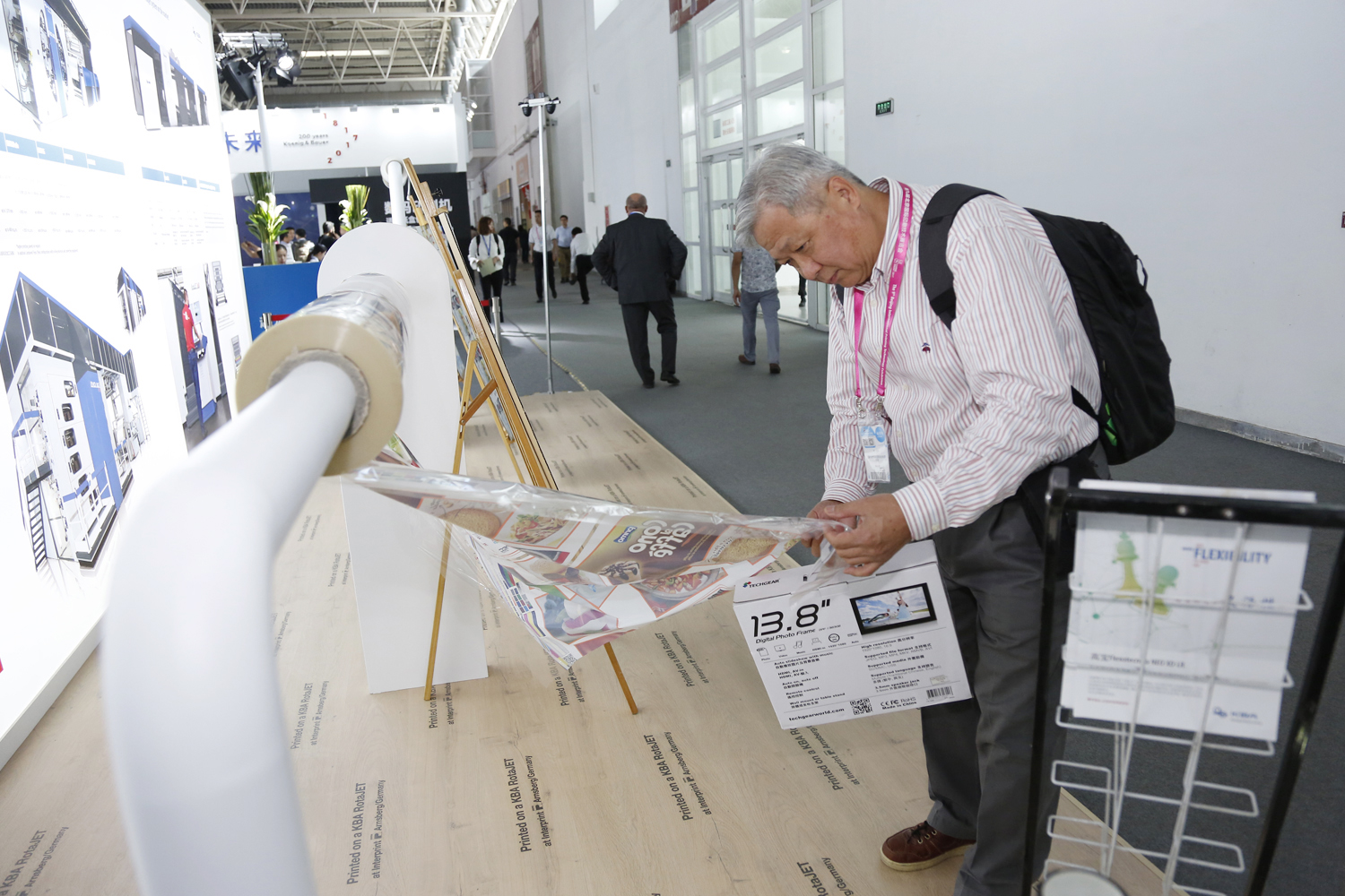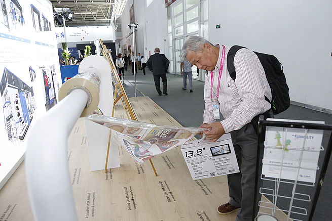 Official hand-over of the Rapida 106 to Zhao Bang, general manager of Liuyang Shuangfu Packaging Printing Co. Ltd (centre), here to be seen with Walter Zehner, CEO KBA Greater China, Ralf Sammeck, CEO KBA-Sheetfed, Dietmar Heyduck, sales director KBA-Sheetfed, and Lianbiao Wang, general manager KBA Greater China (left to right) (5)Print samples illustrated the capabilities of presses for the printing of flexible packaging from KBA-Flexotecnica (photo) and possible applications of the digital web presses KBA RotaJET L and VL (6)The products in greatest demand at the show were medium- and large-format sheetfed presses. Alongside the Rapida 106 for Liuyang Shuangfu Packaging Printing, a further press of this high-end series was sold with seven printing units, inline coater and extended delivery. Several buyers opted for the Rapida 105, including two eight-colour coater presses, one of which was also configured with the cold foil module Vinfoil Optima. In large format, KBA lived up to its role as market leader with several new orders, and a number of sales contracts for the Rapida 75 PRO are also close to completion. In total, the orders received matched the figures achieved at Print China two years ago.